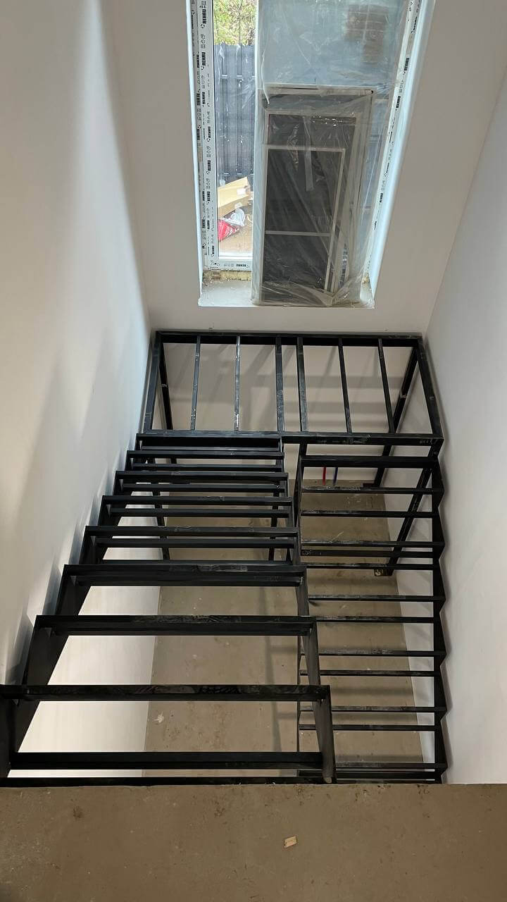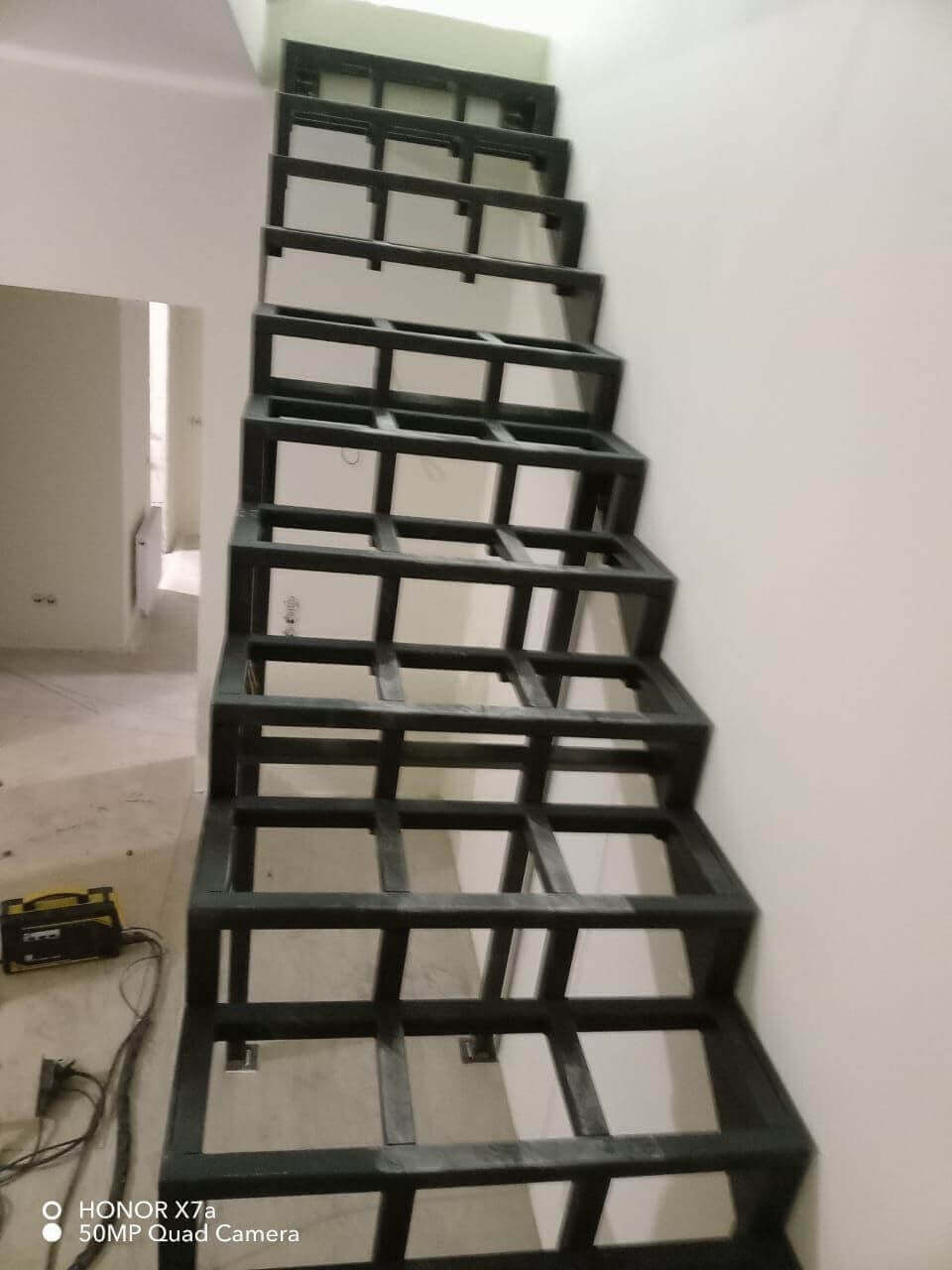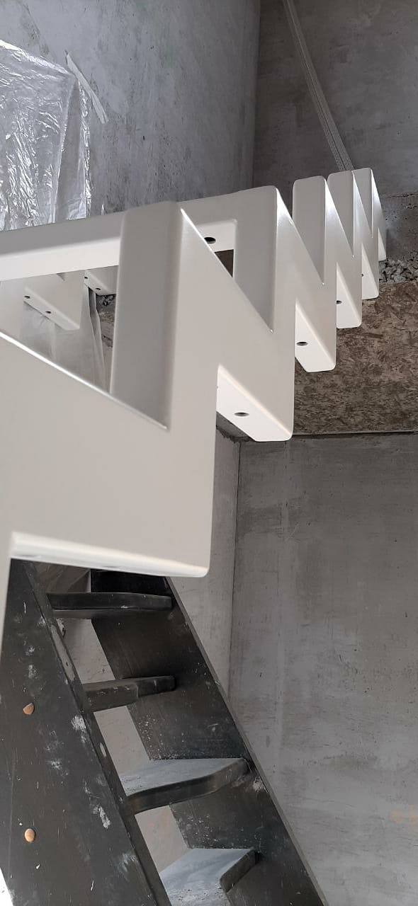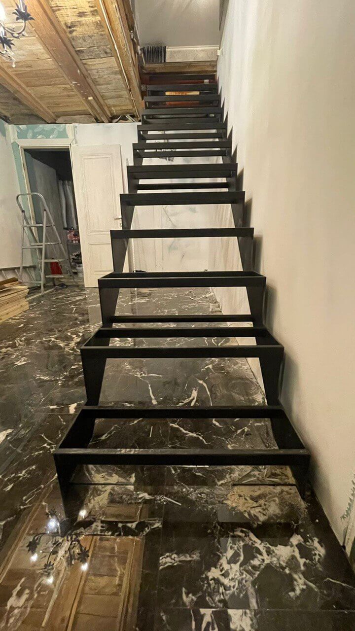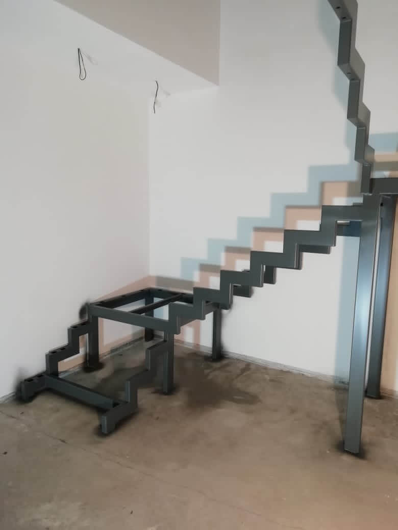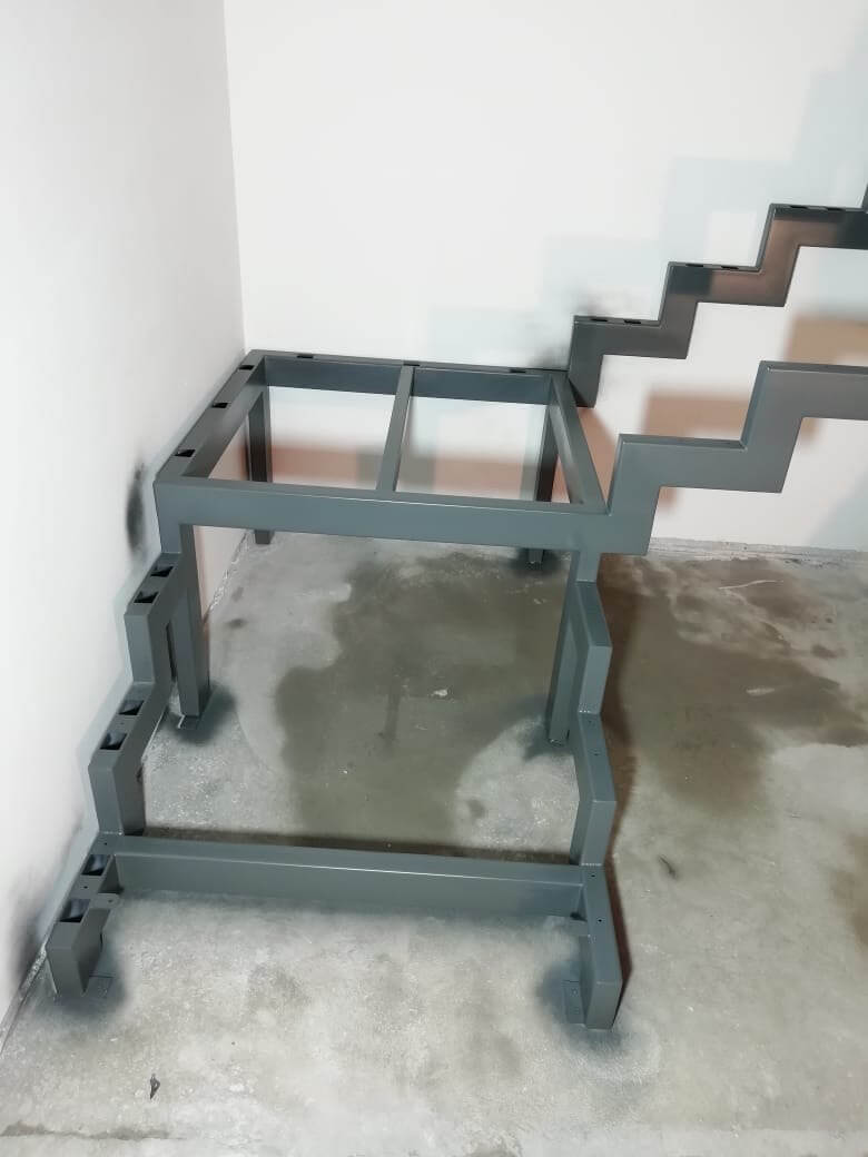 Металлокаркас открытого типа - На тетиве - Вырезанный лазерной резкой - Покраска двух видов: грунт двухкомпонентный эмаль двухкомпонентная либо порошковая покраска
