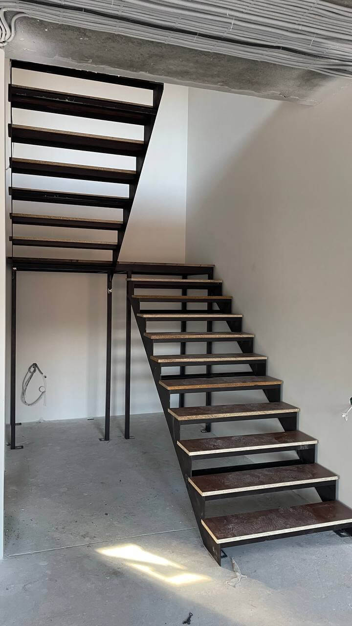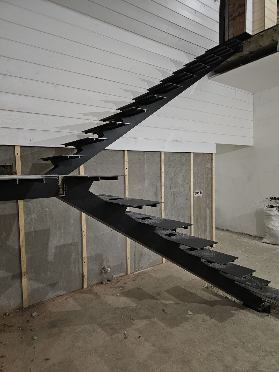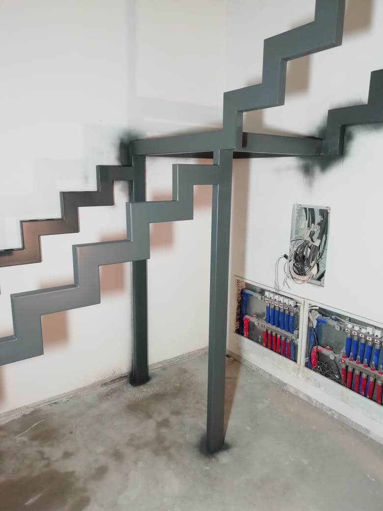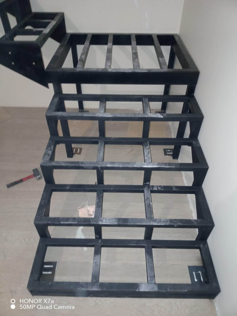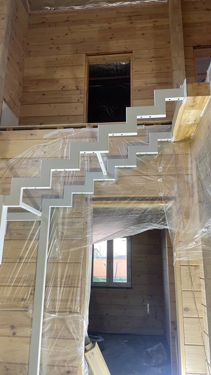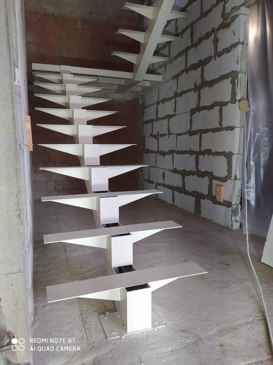 Металлокаркас открытого типа - На тетиве - Вырезанный лазерной резкой - Покраска двух видов: грунт двухкомпонентный эмаль двухкомпонентная либо порошковая покраска