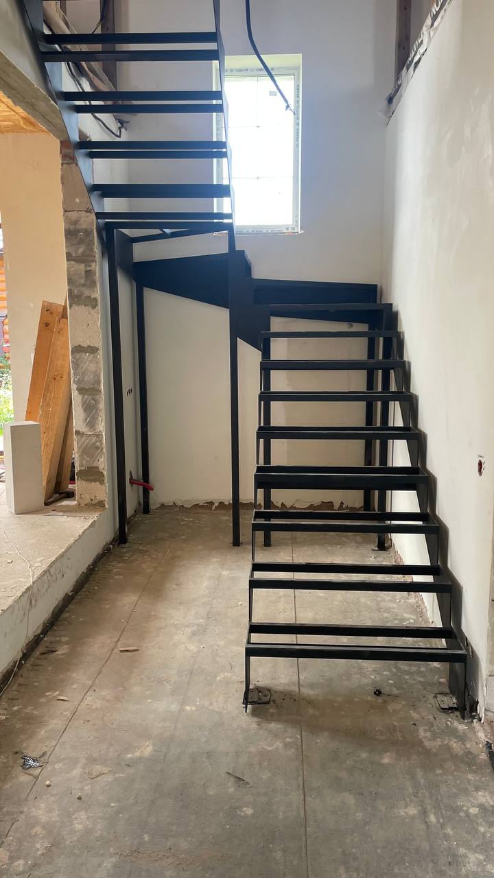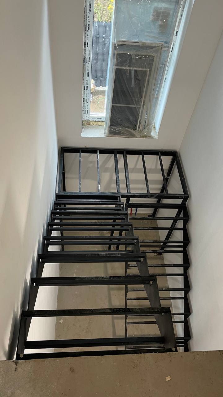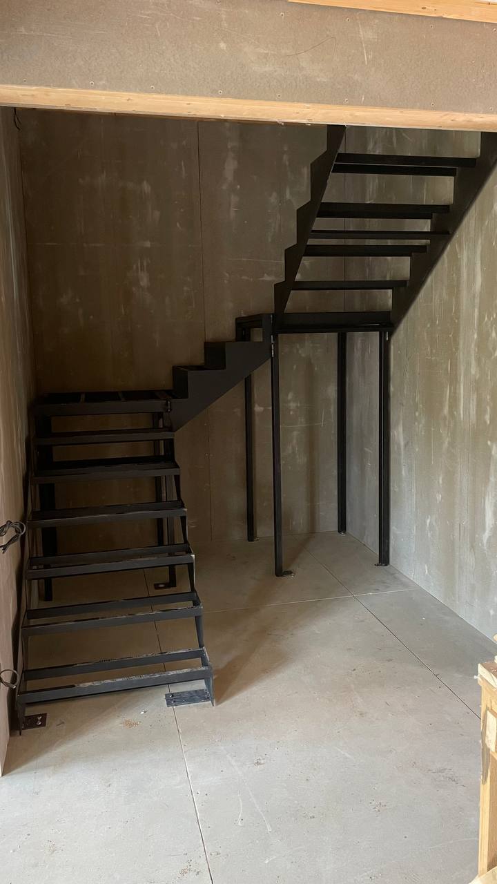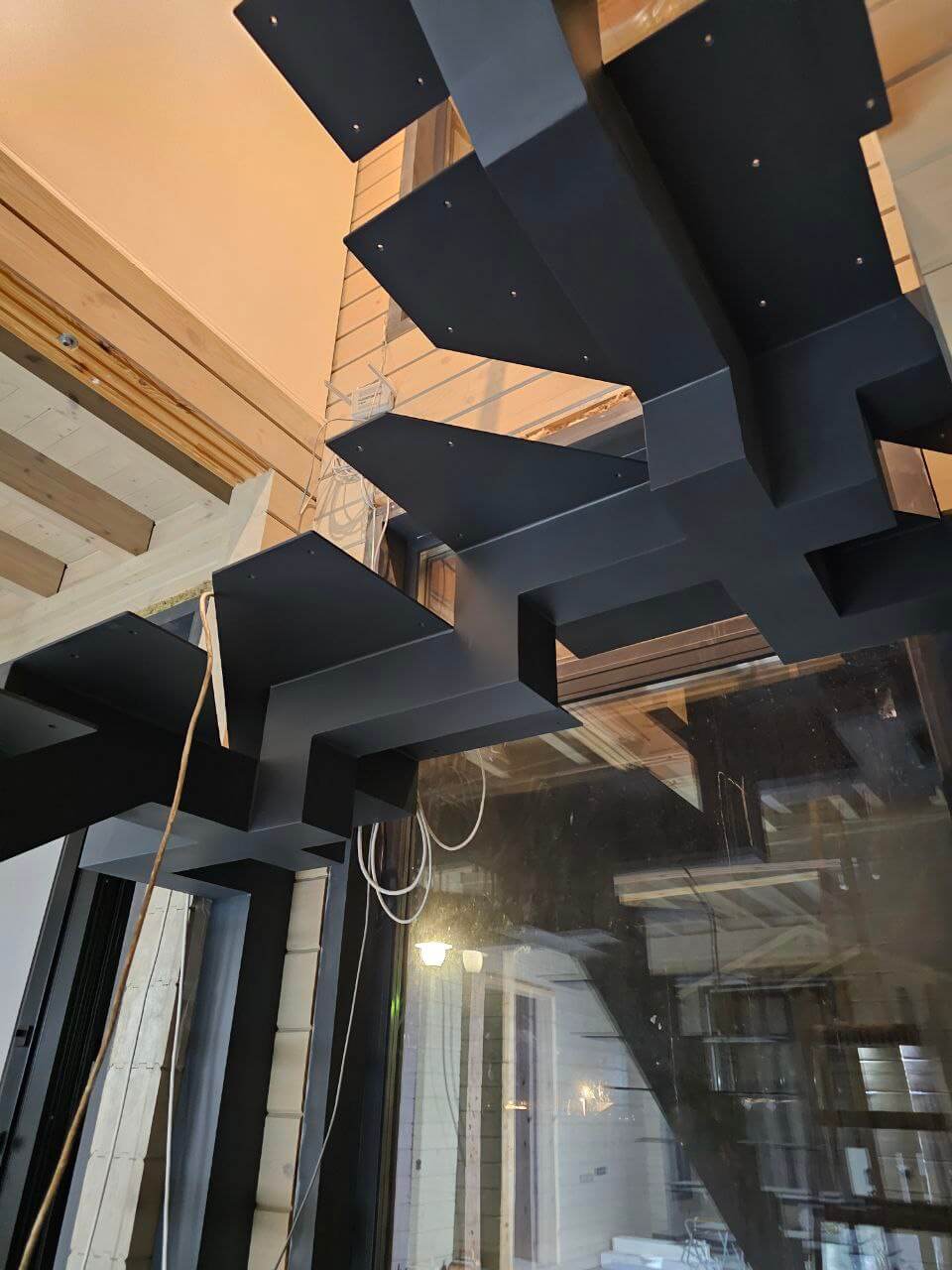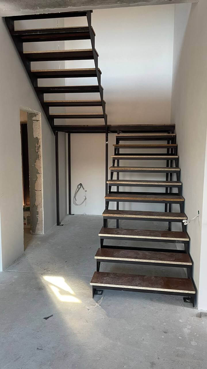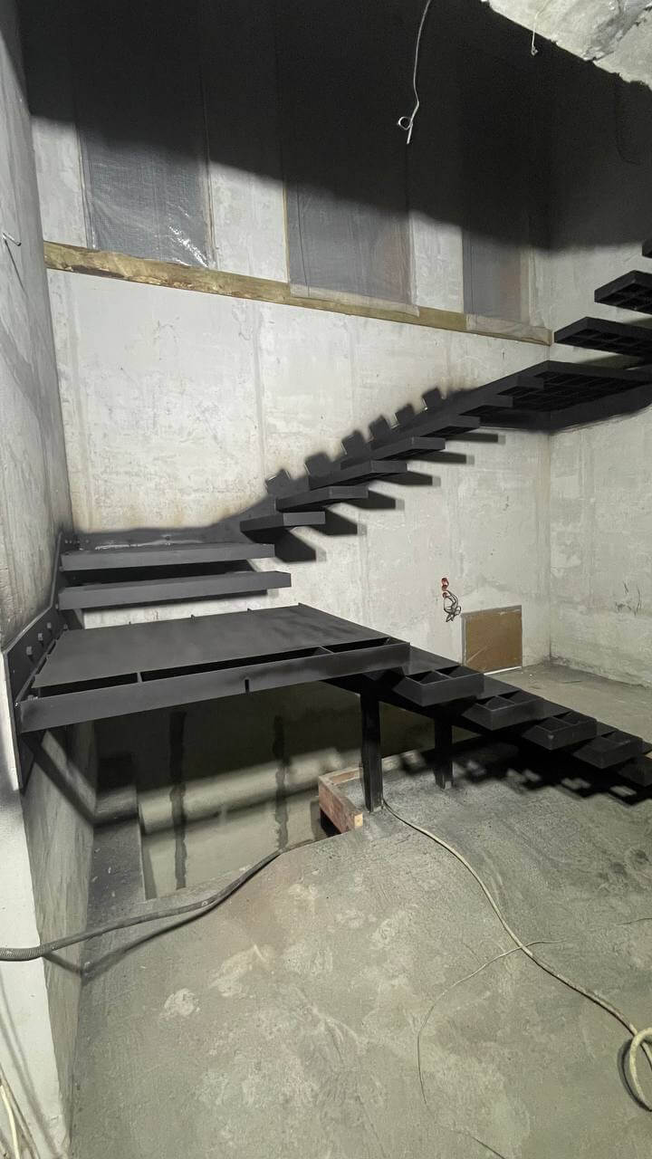 Металлокаркас открытого типа - На тетиве - Вырезанный лазерной резкой - Покраска двух видов: грунт двухкомпонентный эмаль двухкомпонентная либо порошковая покраска