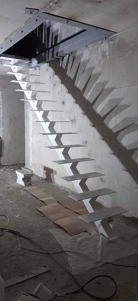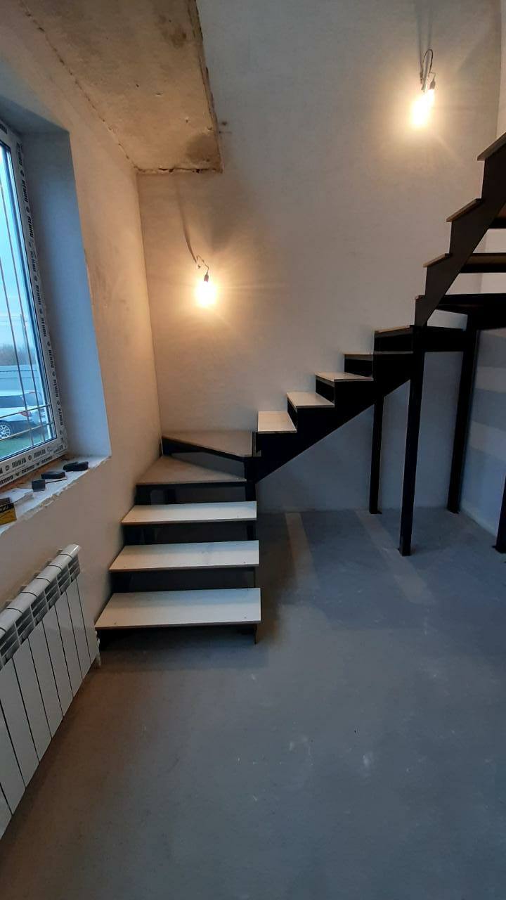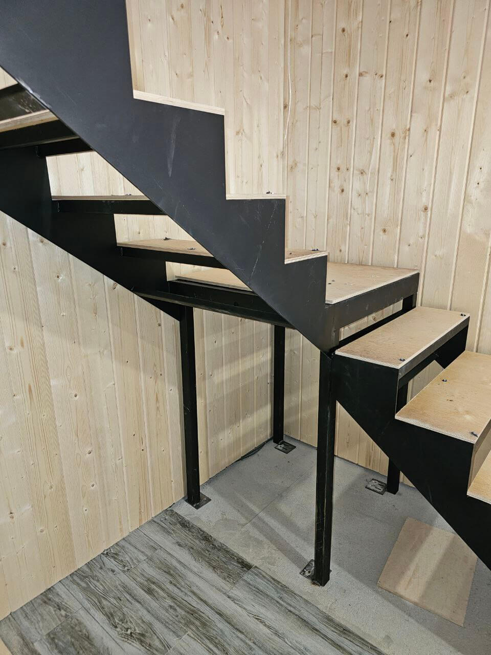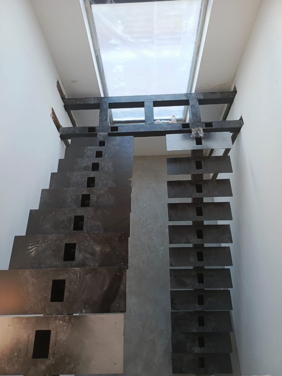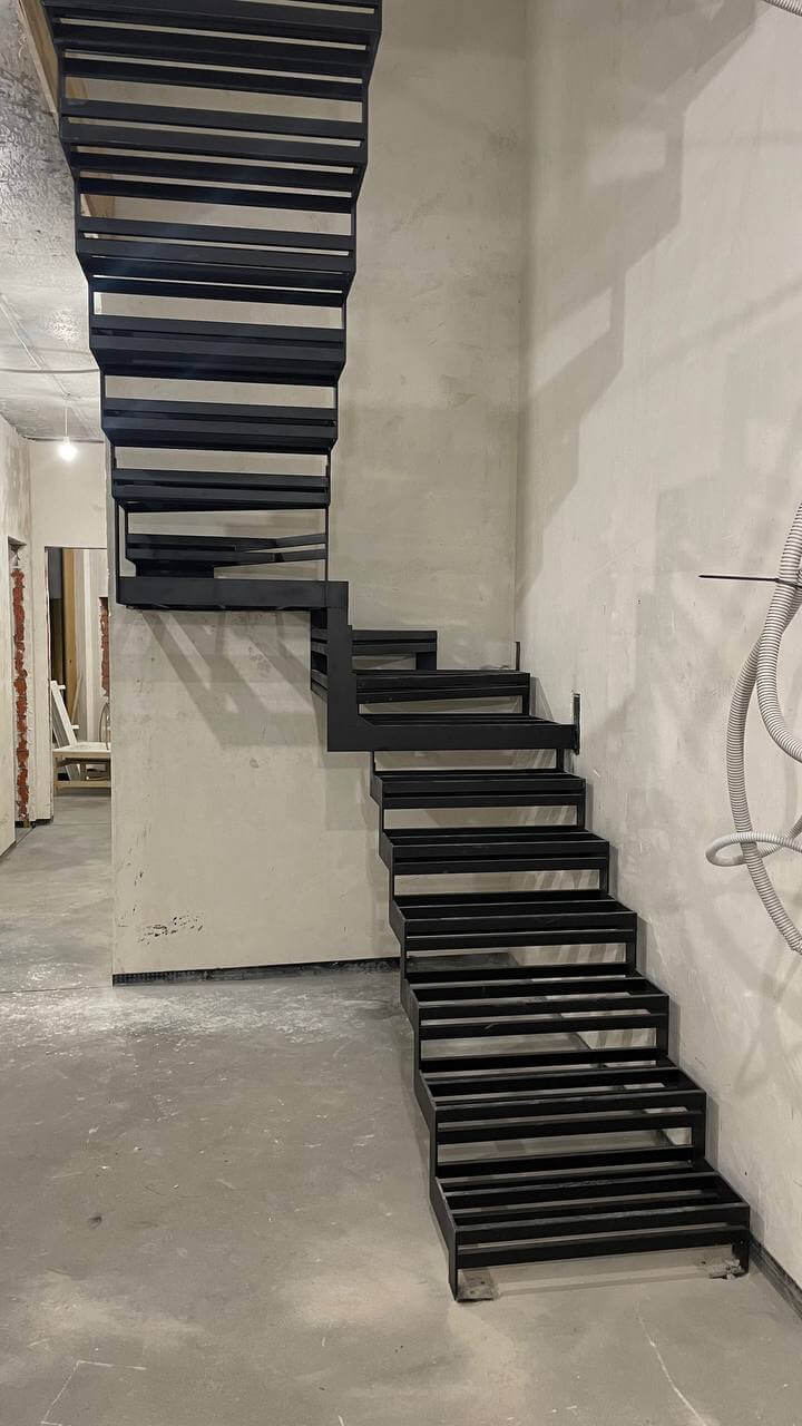 Металлокаркас открытого типа - На тетиве - Вырезанный лазерной резкой - Покраска двух видов: грунт двухкомпонентный эмаль двухкомпонентная либо порошковая покраска
