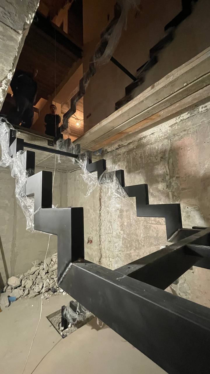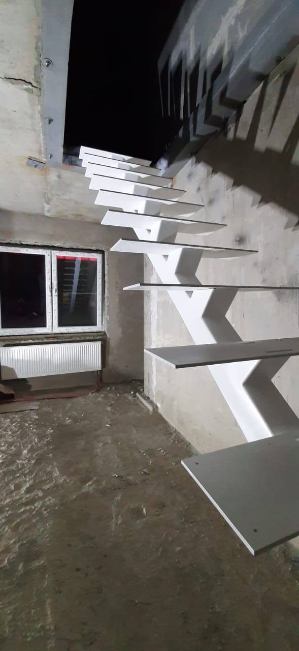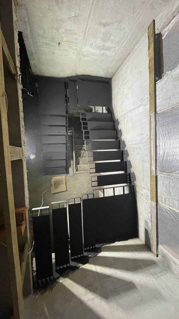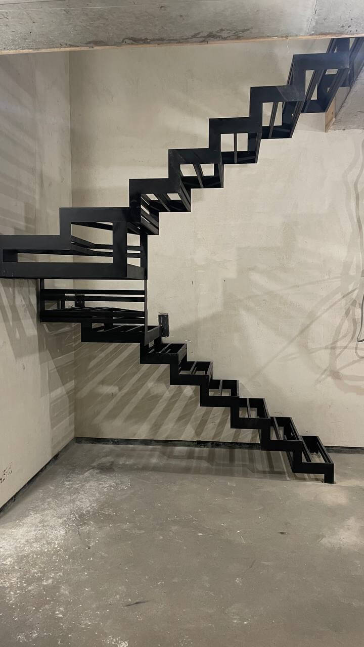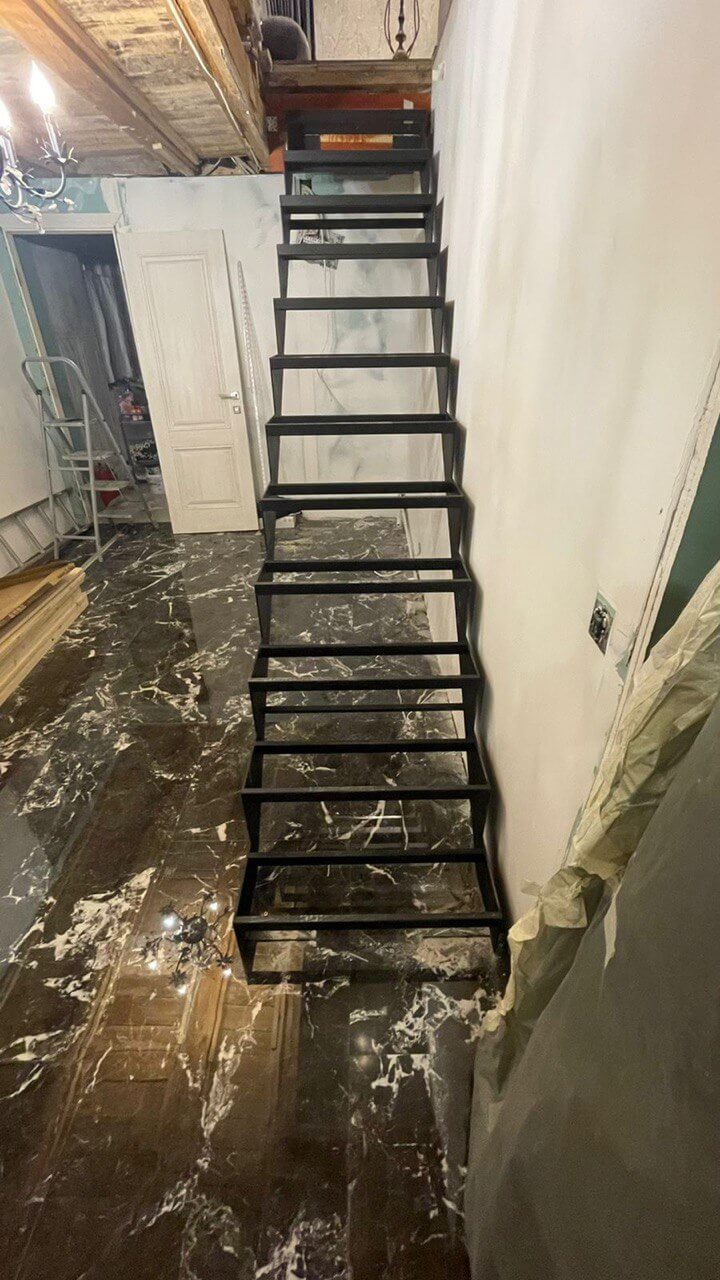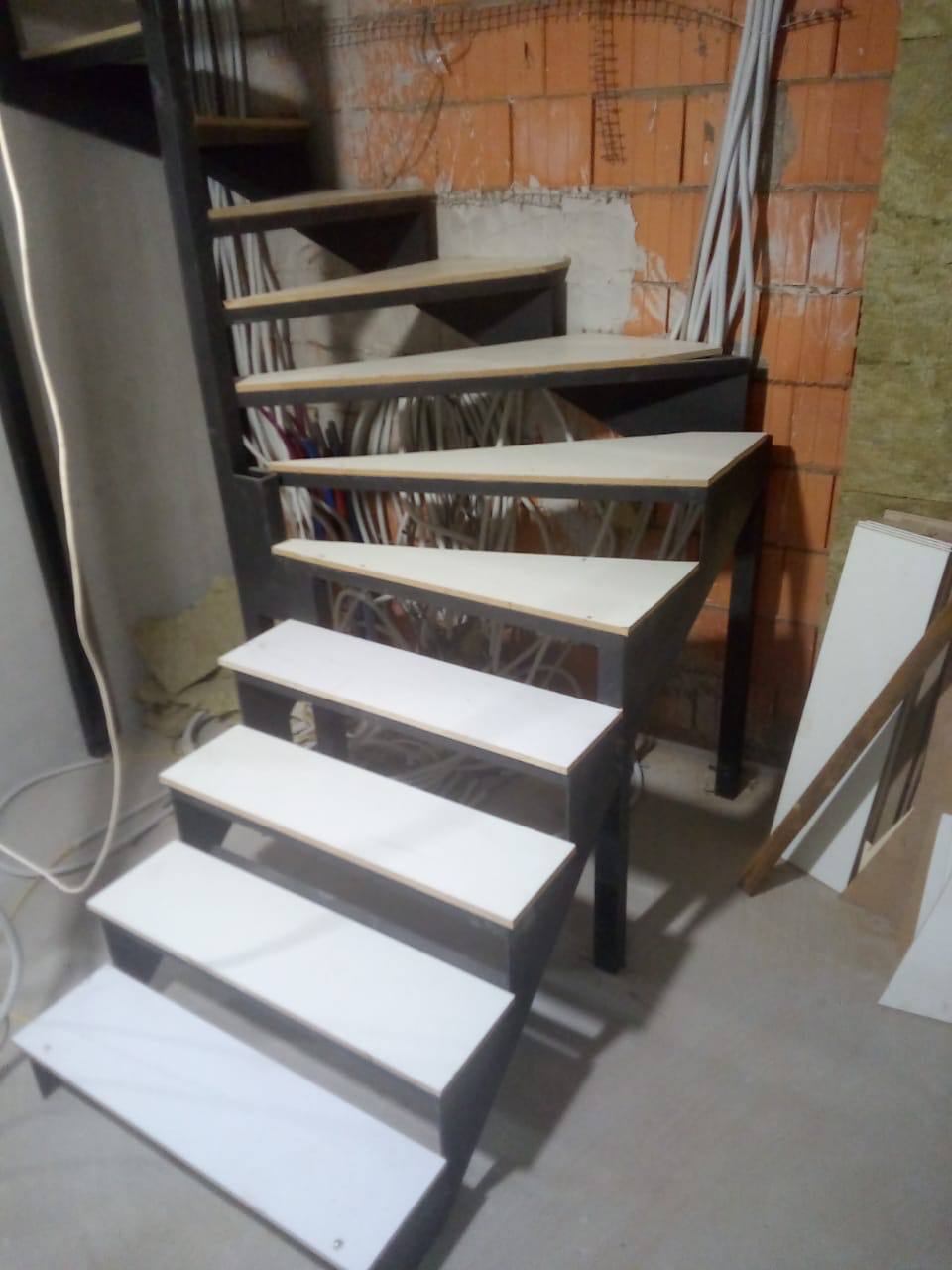 Металлокаркас открытого типа - На тетиве - Вырезанный лазерной резкой - Покраска двух видов: грунт двухкомпонентный эмаль двухкомпонентная либо порошковая покраска