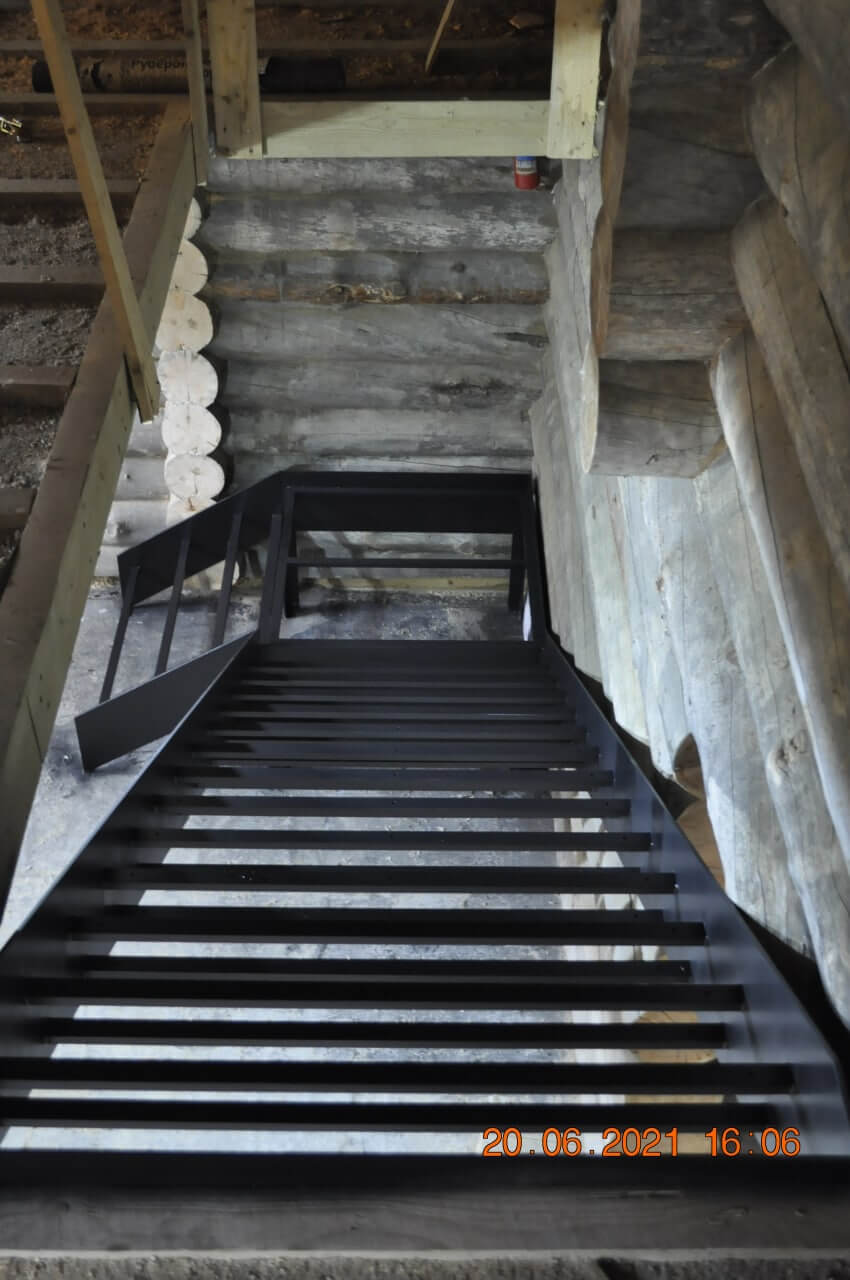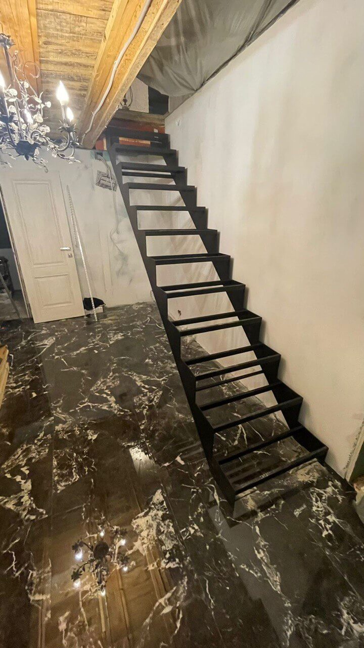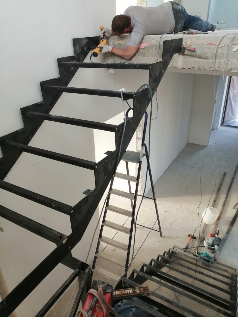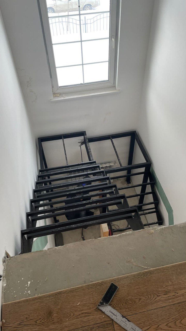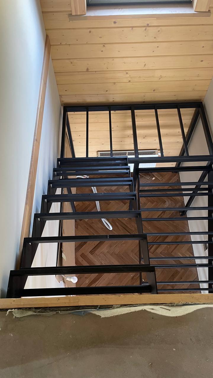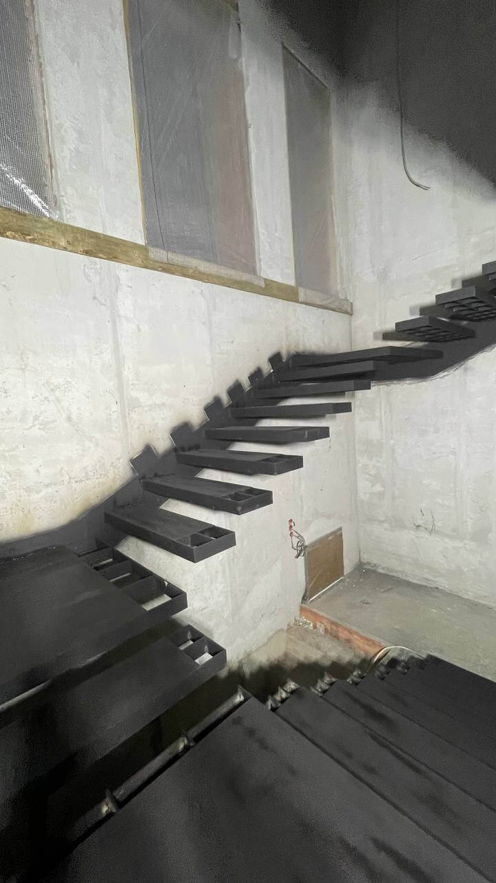 Металлокаркас открытого типа - На тетиве - Вырезанный лазерной резкой - Покраска двух видов: грунт двухкомпонентный эмаль двухкомпонентная либо порошковая покраска