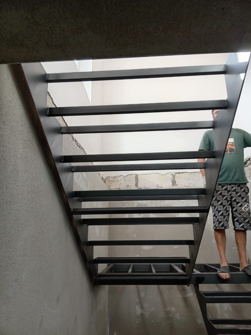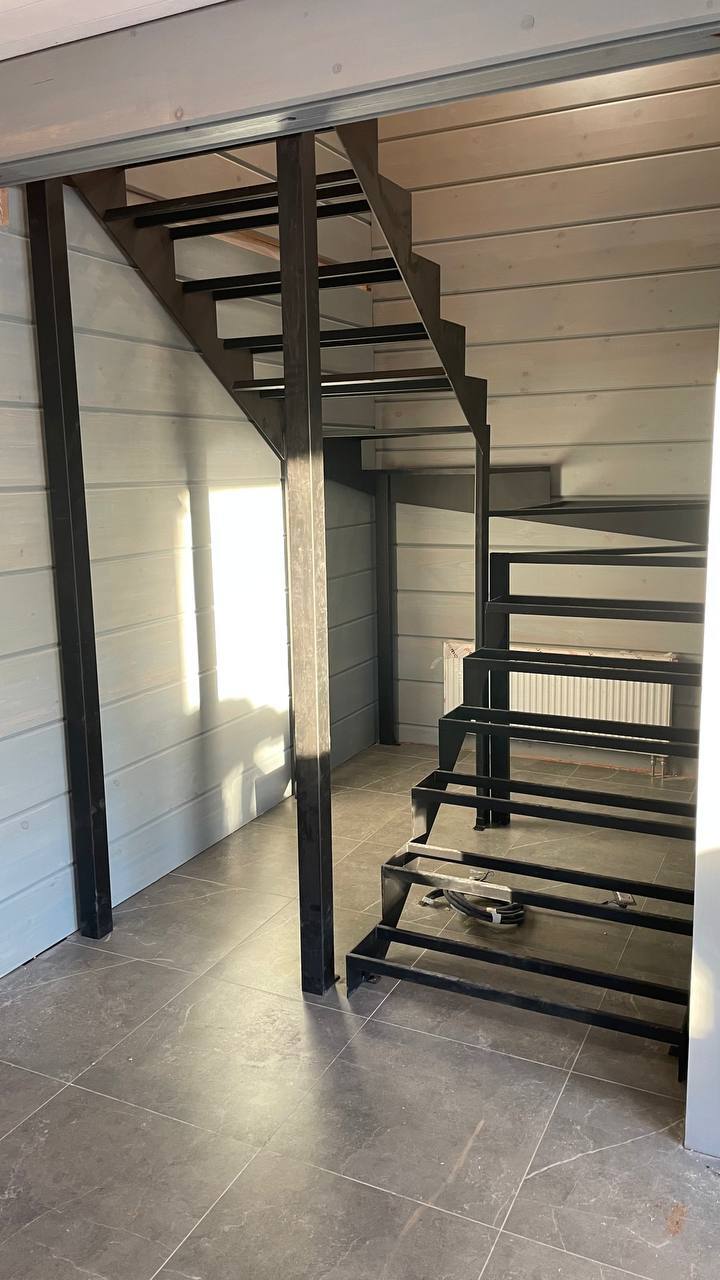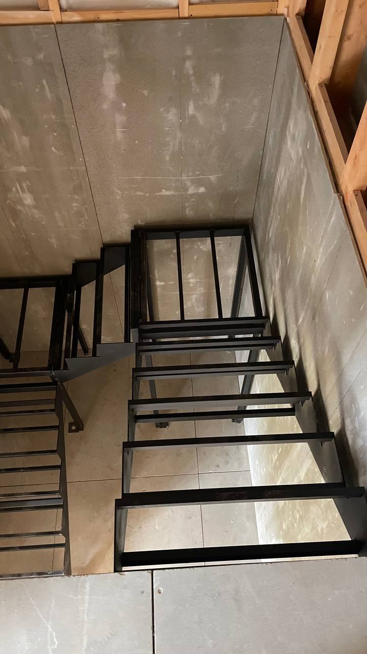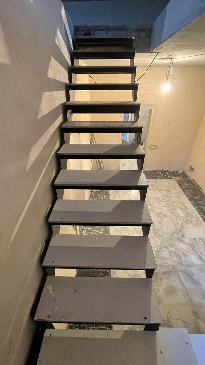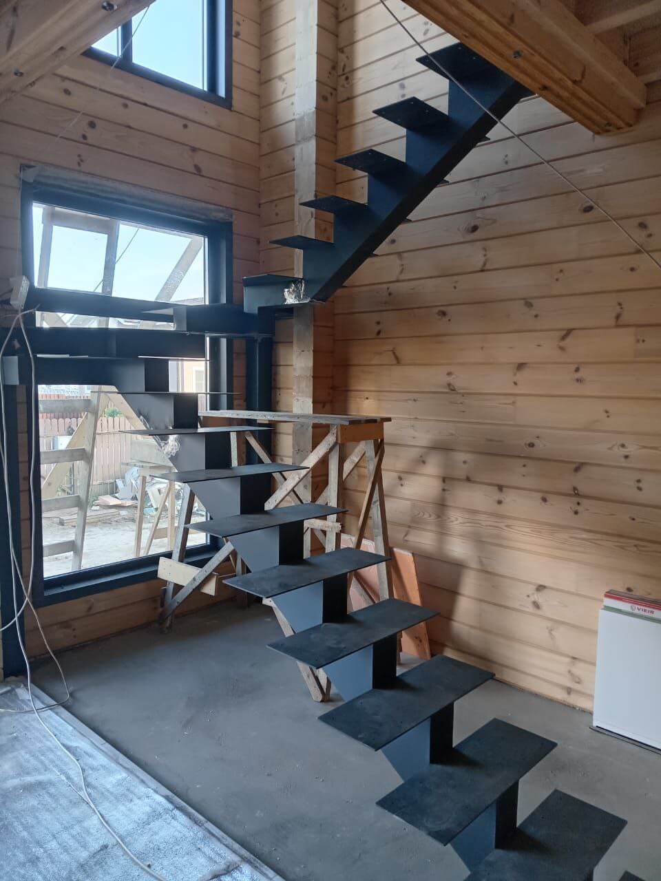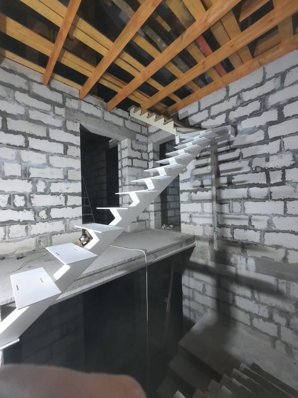 Металлокаркас открытого типа - На тетиве - Вырезанный лазерной резкой - Покраска двух видов: грунт двухкомпонентный эмаль двухкомпонентная либо порошковая покраска