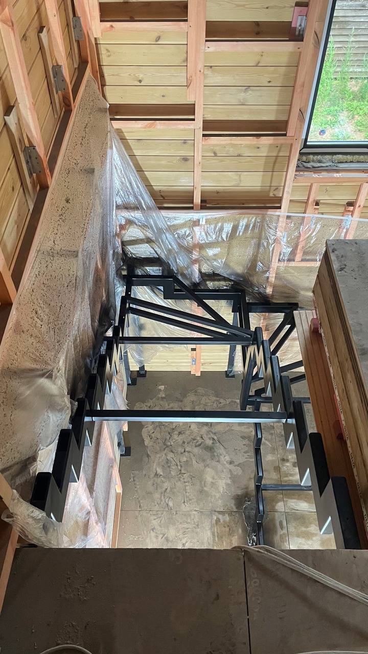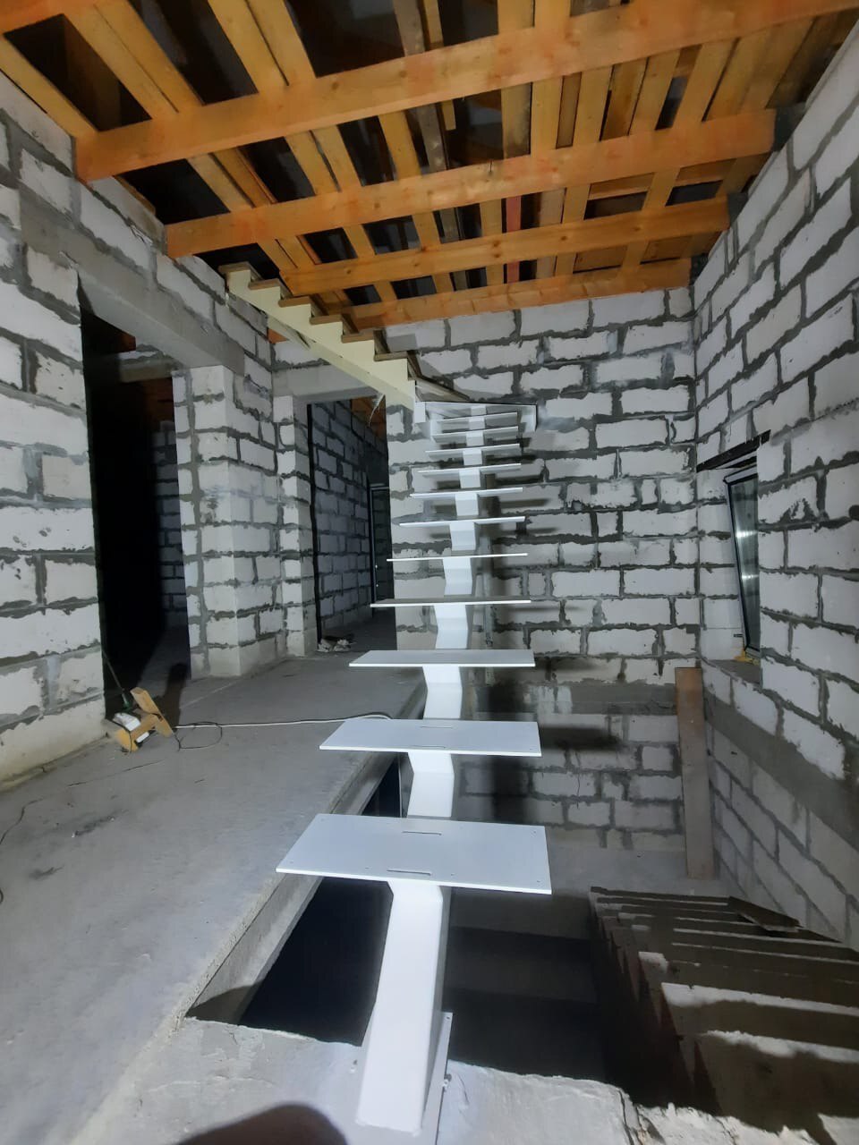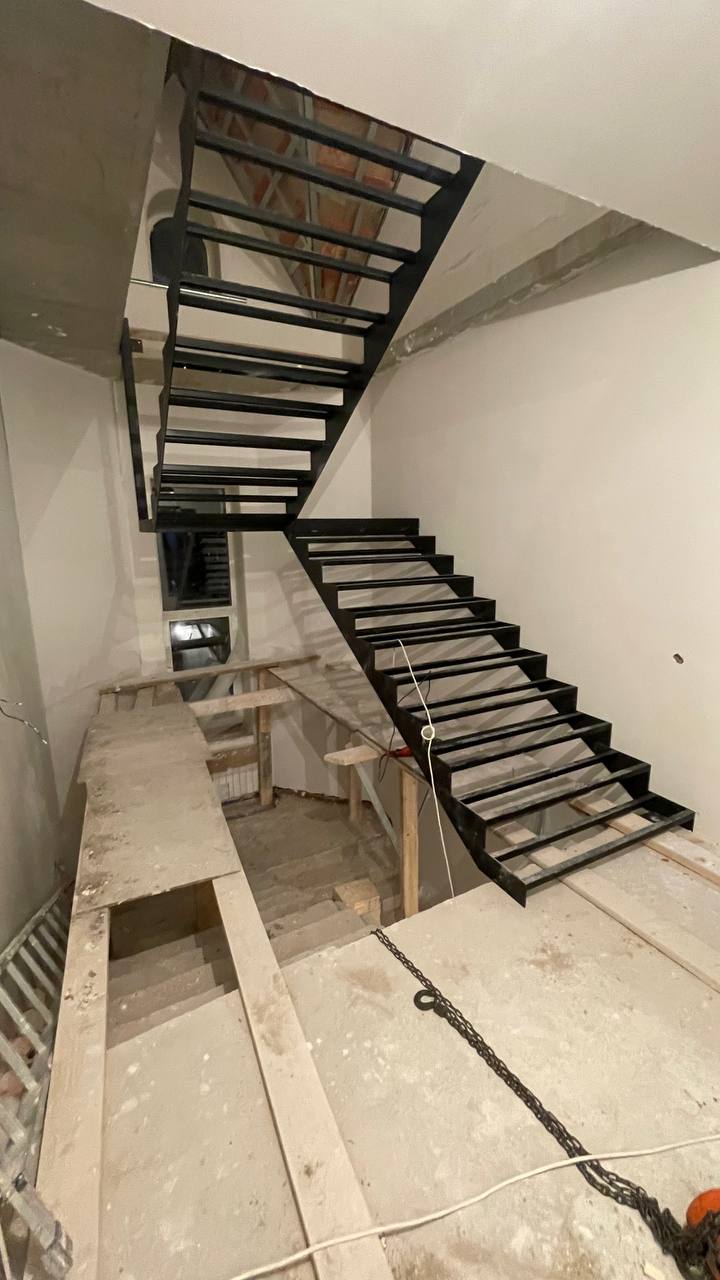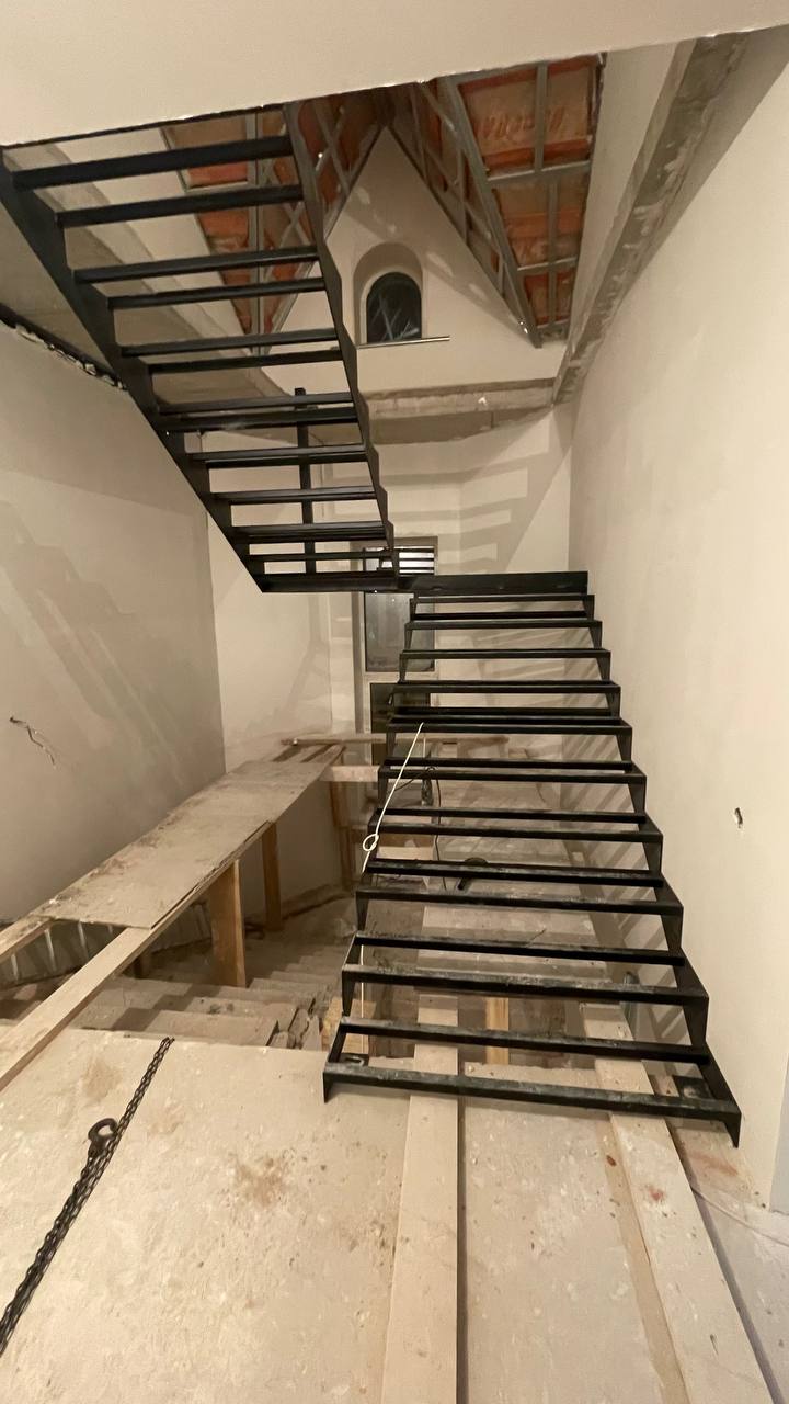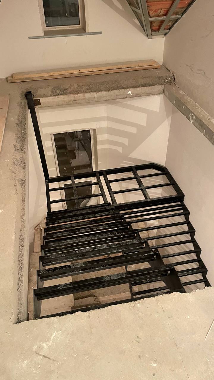 Металлокаркас открытого типа - На тетиве - Вырезанный лазерной резкой - Покраска двух видов: грунт двухкомпонентный эмаль двухкомпонентная либо порошковая покраска