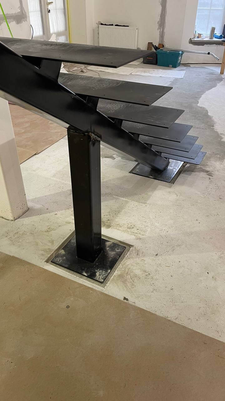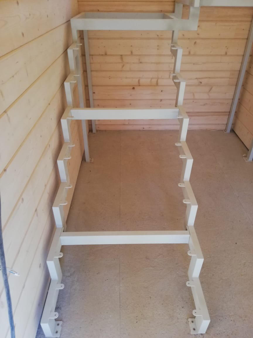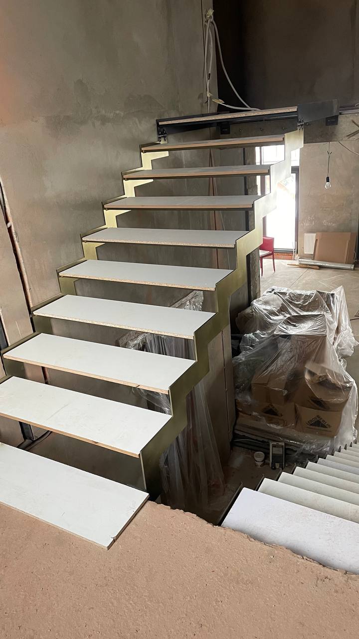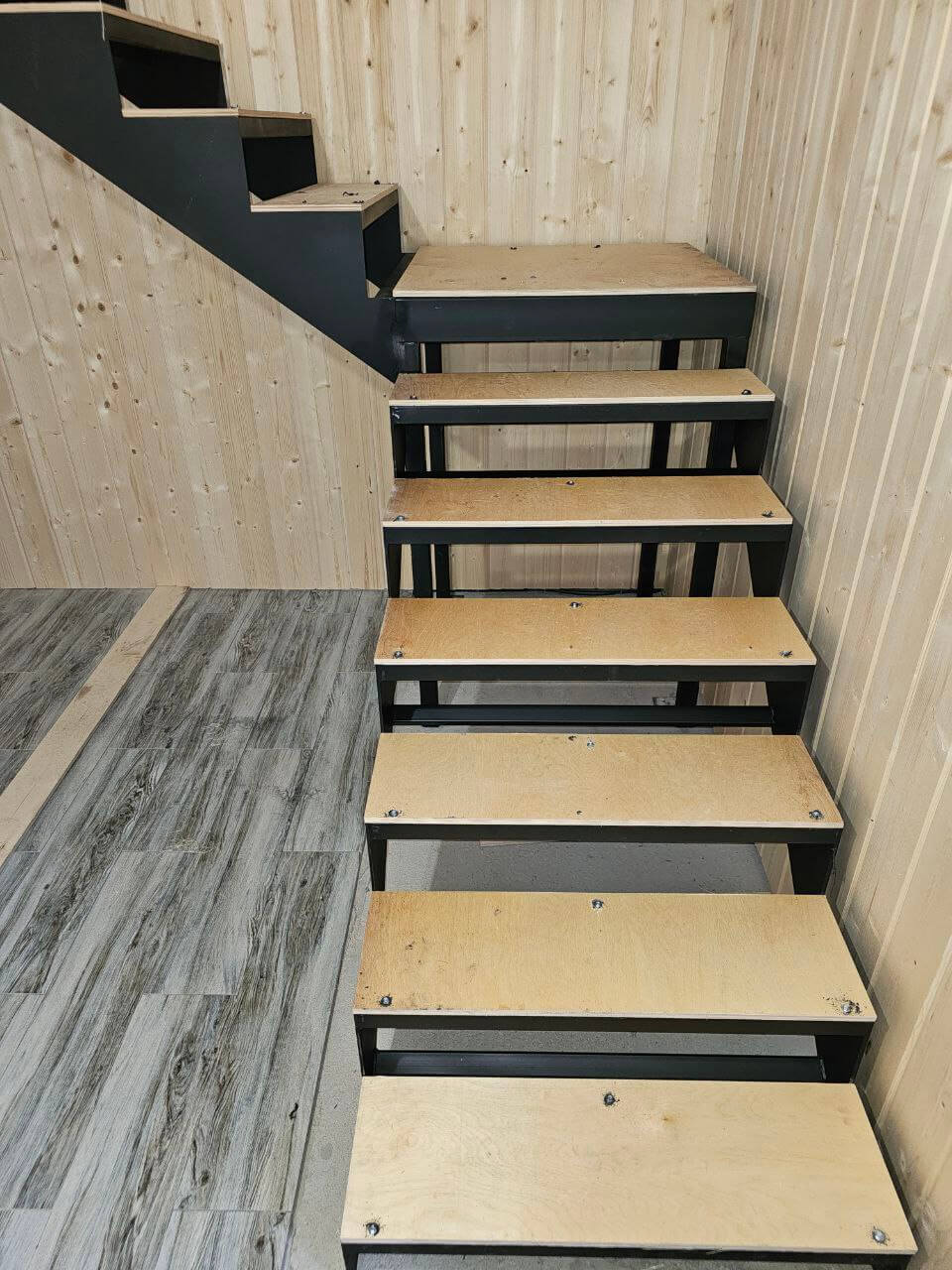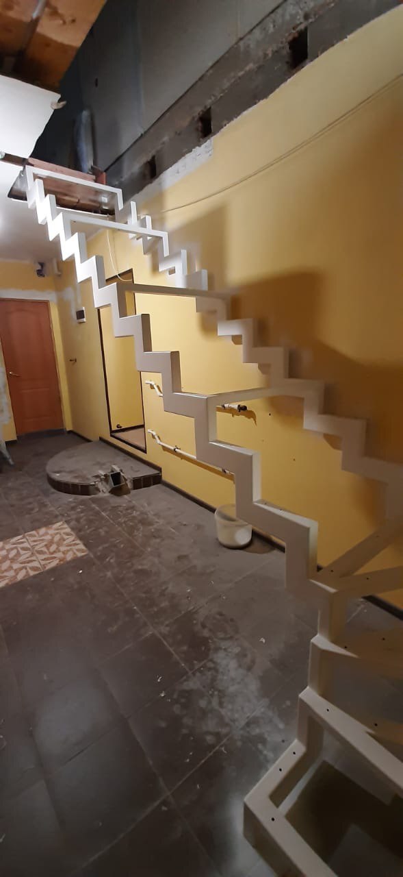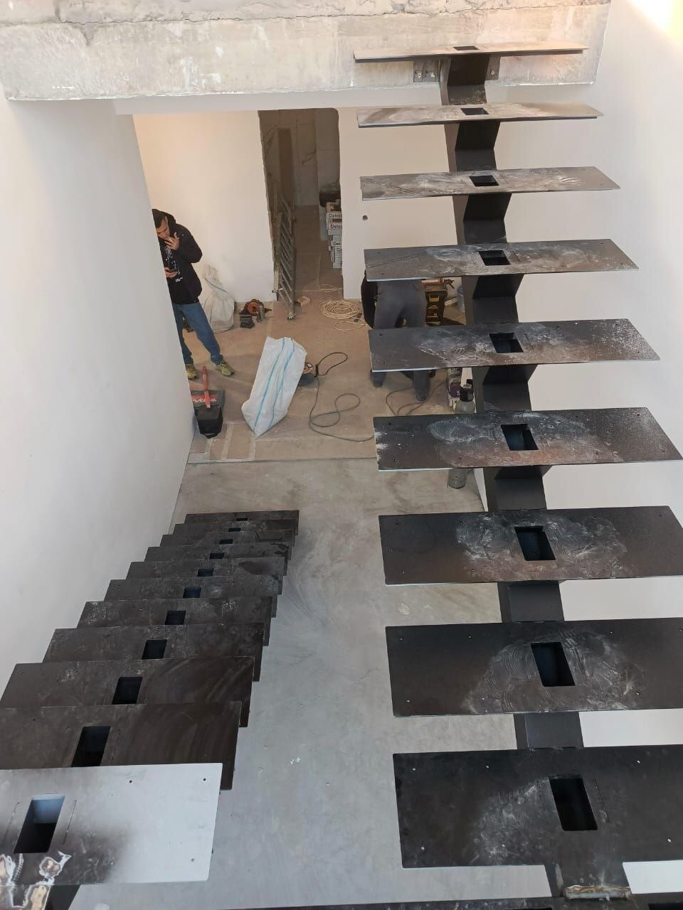 Металлокаркас открытого типа - На тетиве - Вырезанный лазерной резкой - Покраска двух видов: грунт двухкомпонентный эмаль двухкомпонентная либо порошковая покраска