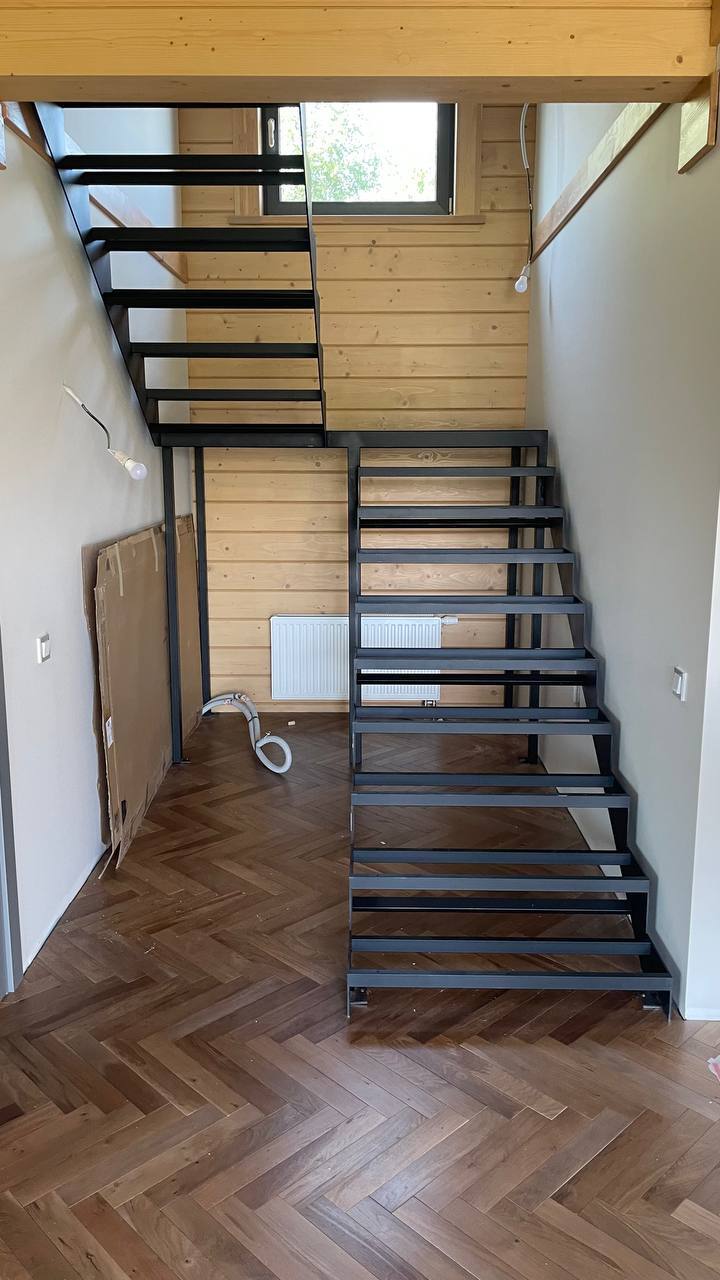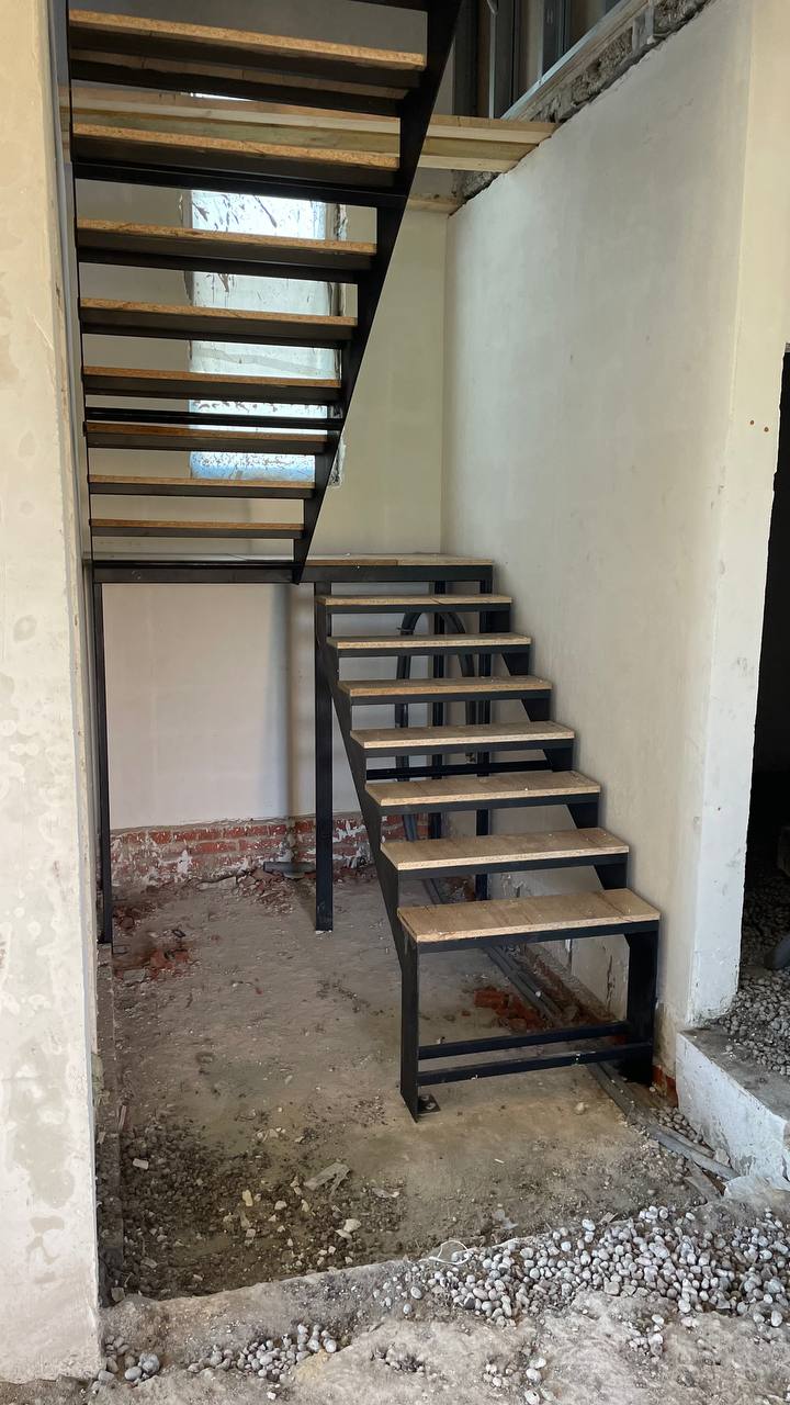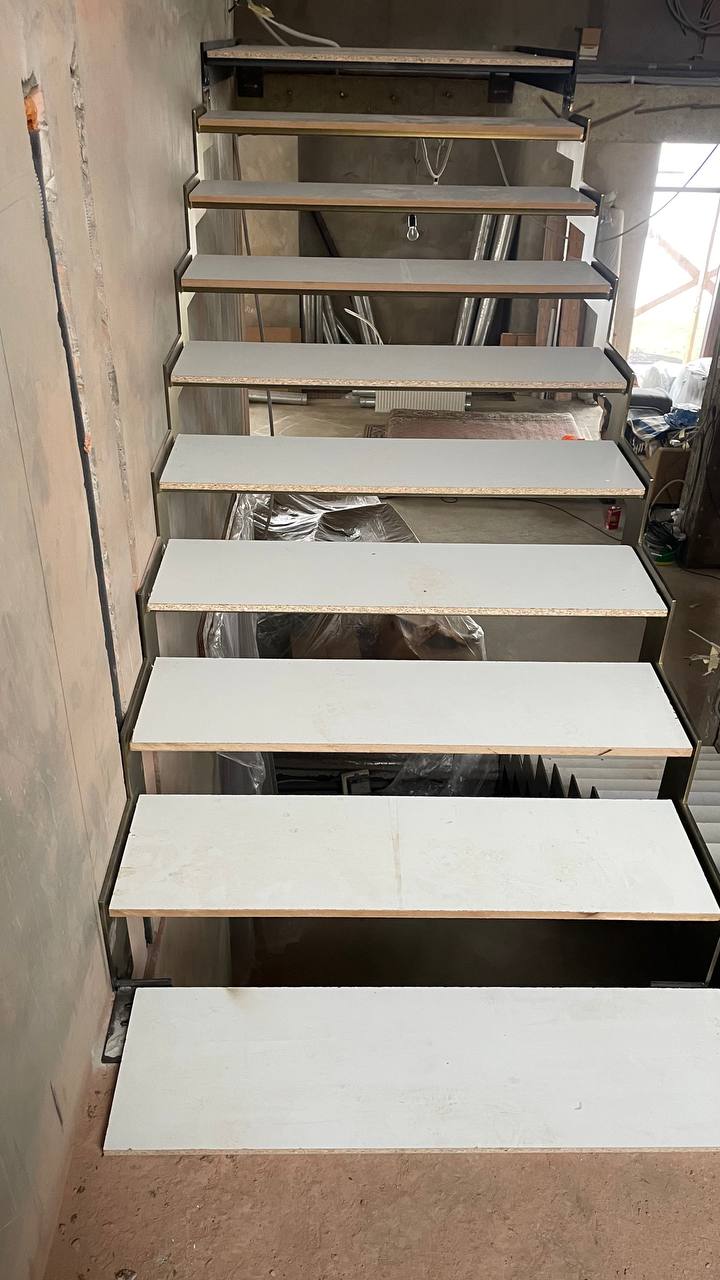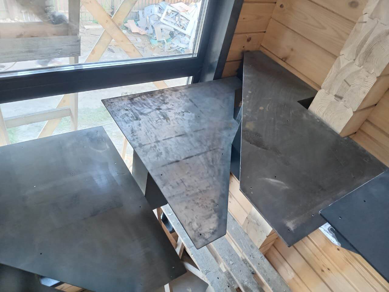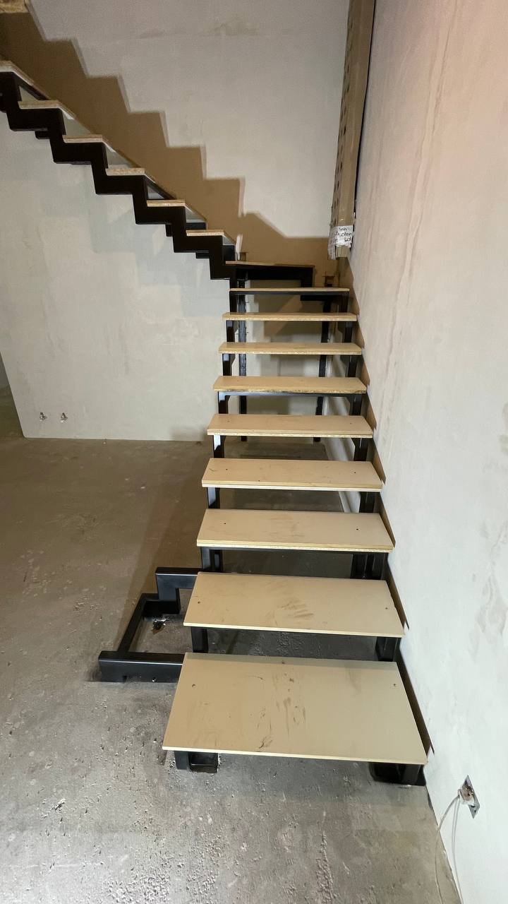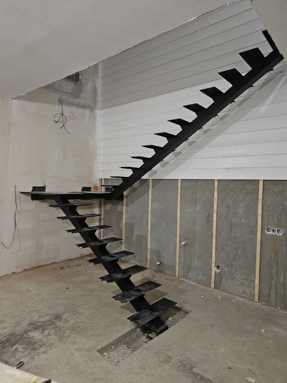 Металлокаркас открытого типа из листа - Косоур из листа гк 8мм, изготовленный лазерной резкой - С отверстиями под крепления ступеней - Покраска двух видов: грунт двухкомпонентный эмаль двухкомпонентная либо порошковая покраска
